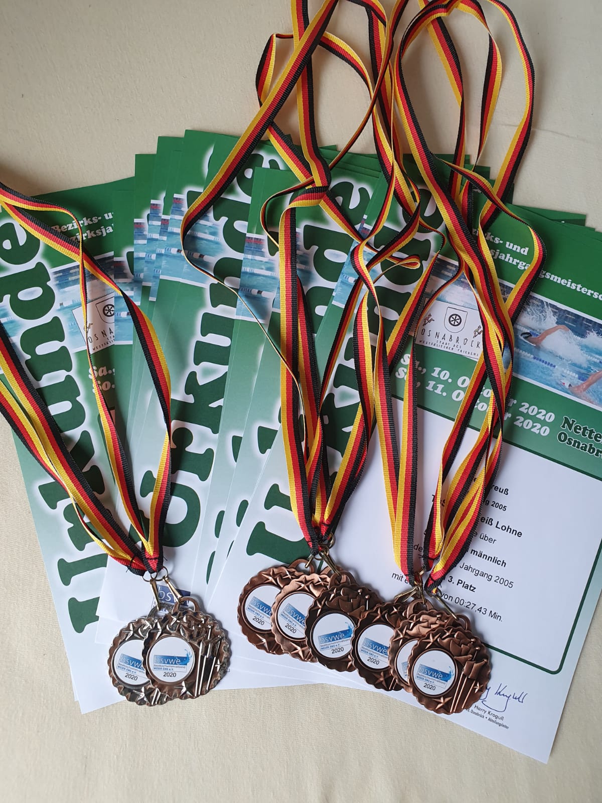 10.10.2020 - Zwei Medaillen gab es heute bei den Bezirksmeisterschaften für Julius. Drei vierte Plätze und etliche neue Bestzeiten gab es heute für ihn, Linn und Josefine in Osnabrück. 12 Starts und 12 neue Bestzeiten ist das Ergebnis des 1. Abschnitts. Top Quote heute. Mal schauen wie es morgen mit den älteren weitergeht 🏊🏻03. - 04. Okt 2020 - Bezirksmeisterschaften Meldeergebnis Protokoll